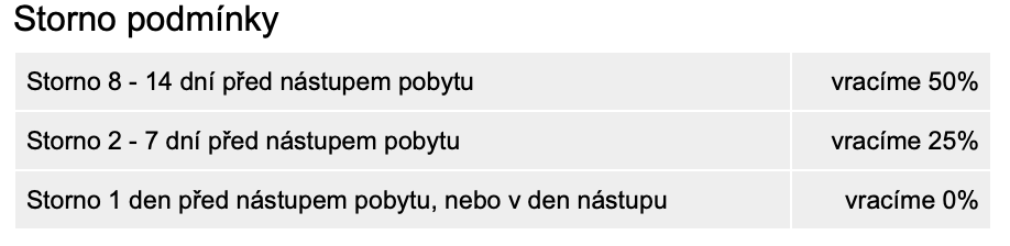• Storno podmínky